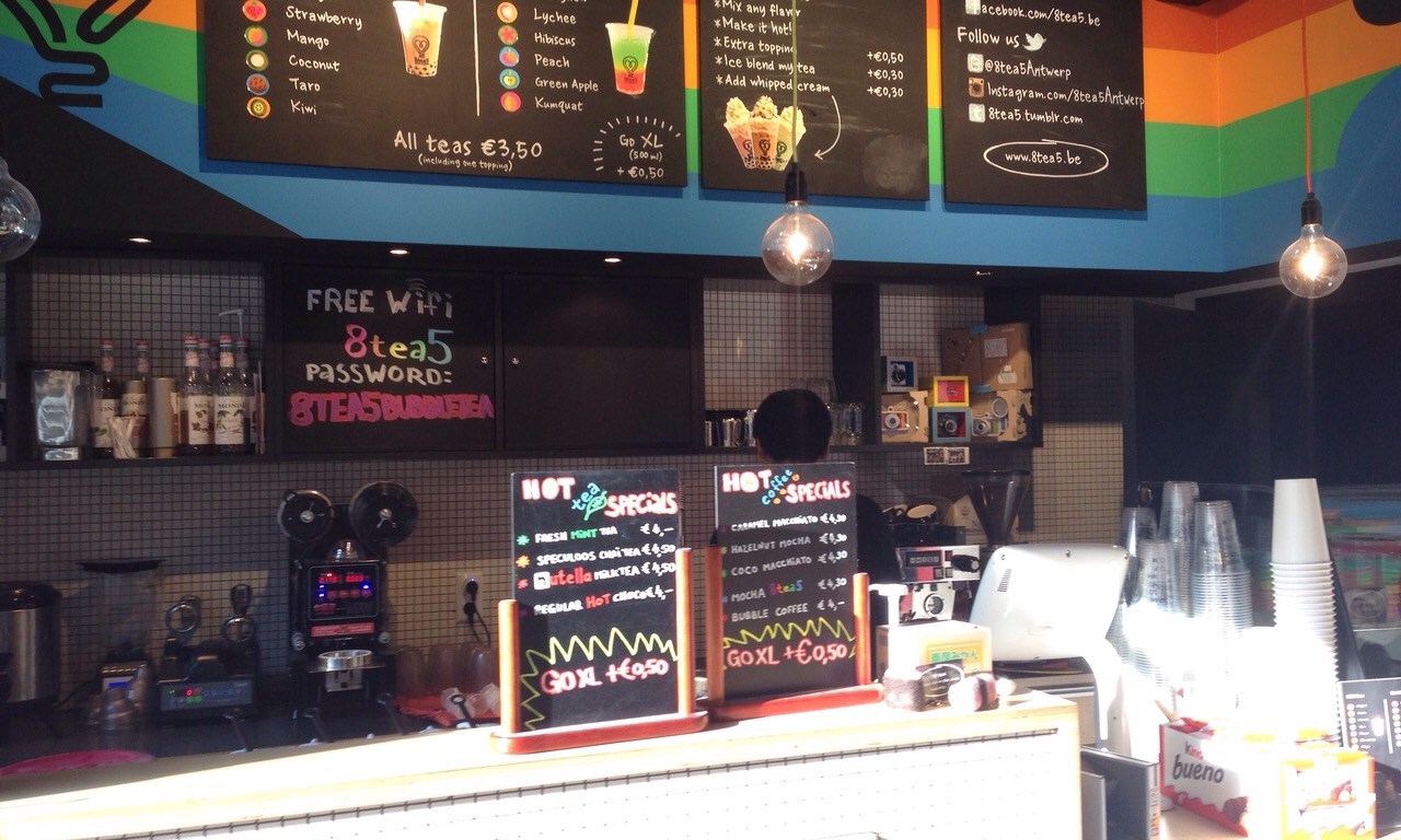 14 Jan 2015 – A cool tea drink in the taste you want with bubbles. Sounds sweet, isn’t? Bubble tea bar 8tea5 in Antwerp has it all. They work together with Lomography, a brand for fashionable analogue cameras, because they both are a colourful concept and both have been arisen since the eighties. Even the name of the bubble tea bar is based on it, when you call it, it sounds like ‘85. It has not only the word tea from bubble tea in it, but it also means, they are open from 8 till 5!