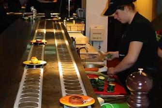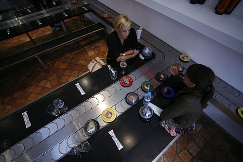 It is a restaurant in Antwerp which sells Spanish and Basque tapas. Basque is from the Basque country. Where two countries are combined, France and Spain on the Atlantic Coast. The restaurant wants you to use your fingers instead of cutlery while eating tapas. And all the tapas is served on a moving band to your table.