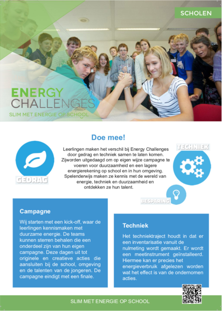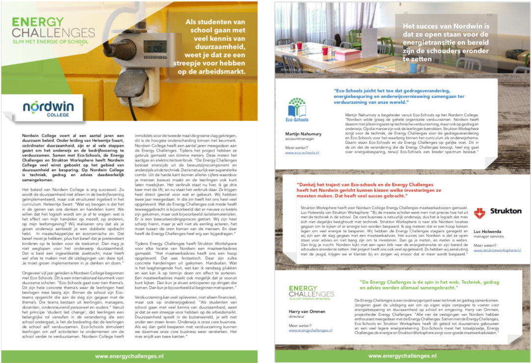 Voor Energy Challenges heb ik het onderstaande 3-ledig infographic mapje vormgegeven. Een mapje, omdat een uitvouwpagina het formaat heeft gekregen van een A5 i.p.v. een A4. Dit was esthetisch mooier, met het speelse karakter passender bij het onderwijs en daarnaast ook nog eens duurzamer! Meer mapjes met minder papier en hoe kleiner, hoe minder inkt voor hetzelfde aantal.