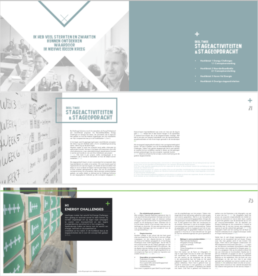 Voor Energy Challenges is het onderstaande bedrijfsrapport geschreven. Daarin staan de verschillende organisatiestructuren per lopende project gevisualiseerd en met een uiteenzetting per project van wat het project inhoudt.