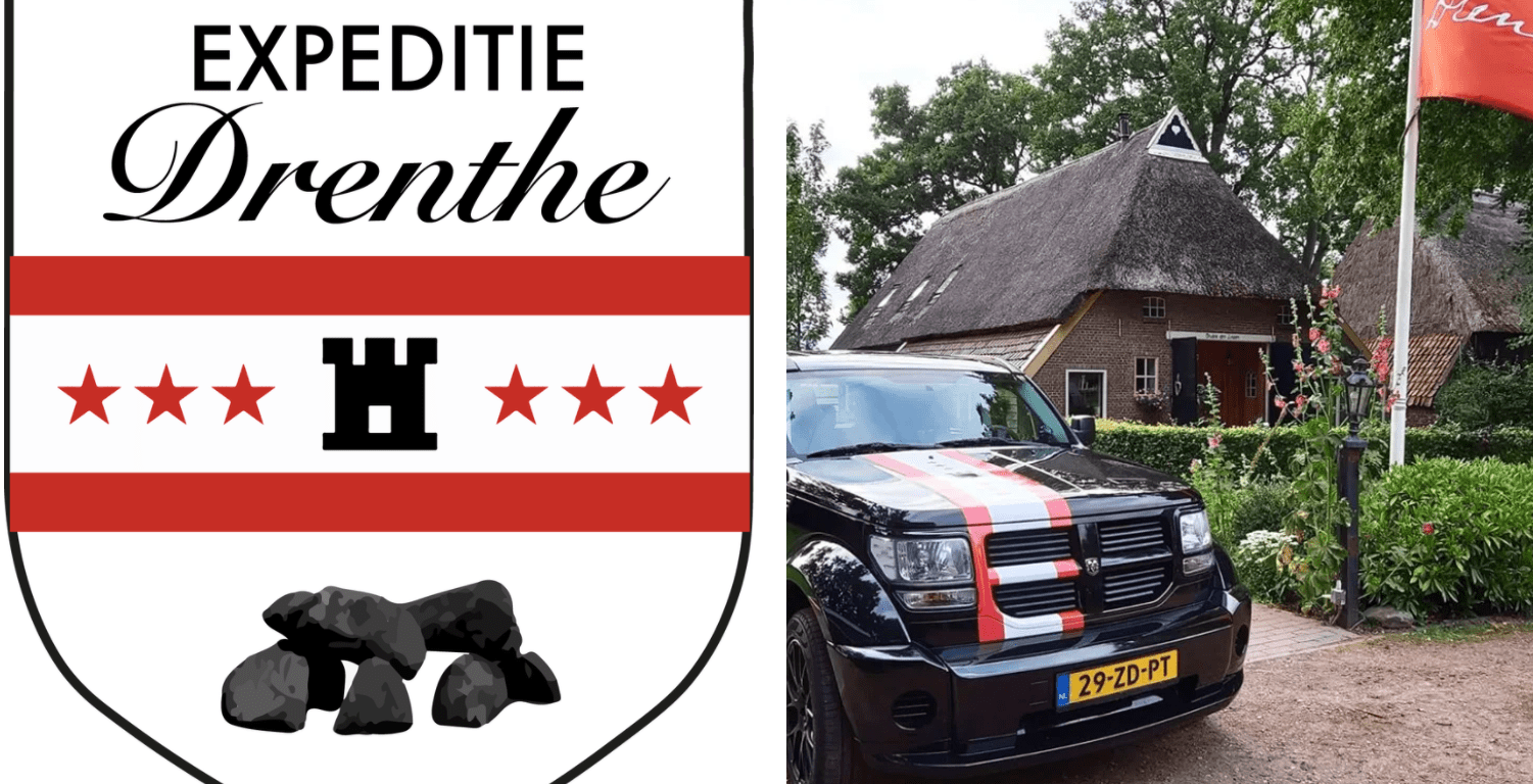 Voor Expeditie Drenthe heb ik het onderstaande logo ontworpen. Deze heeft de klant als sticker op de auto laten drukken, samen met een strook. Na plaatsing op de voertuig is de flyer gemaakt.
